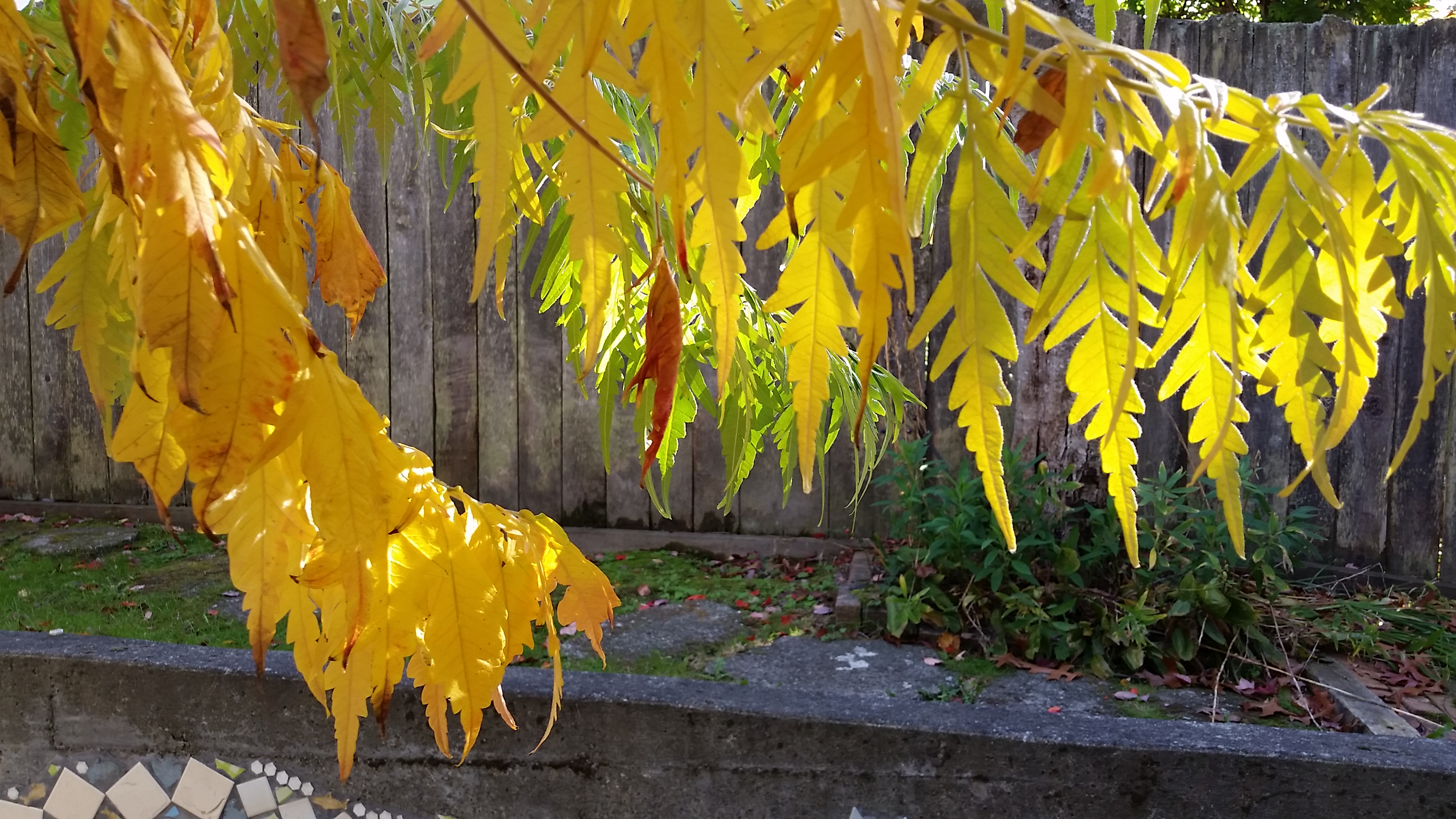 I haven’t spent an autumn here in the States before and I’m amazed by the colours of the leaves. I knew it was supposed to be quite something on the east coast (we foreigners always hear about the Boston area) but I didn’t know it would be so vibrant here on the west coast too. I’m from Scotland and I always thought our autumns were fairly colourful, but they’re nothing compared to what is in my garden. Yep, my garden! Wow!