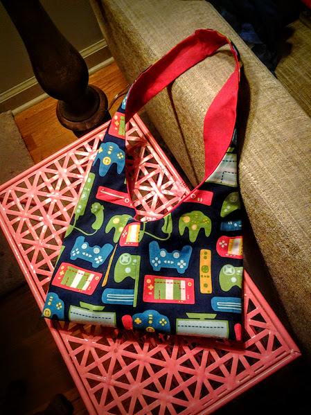 Behold my new videogame bag. I thought I’d whip up something quick for another chance to straighten out my basic sewing skills, and this little bag was the perfect contender.