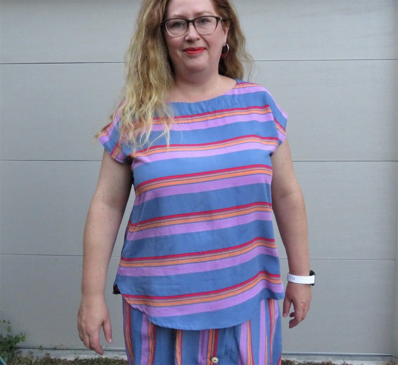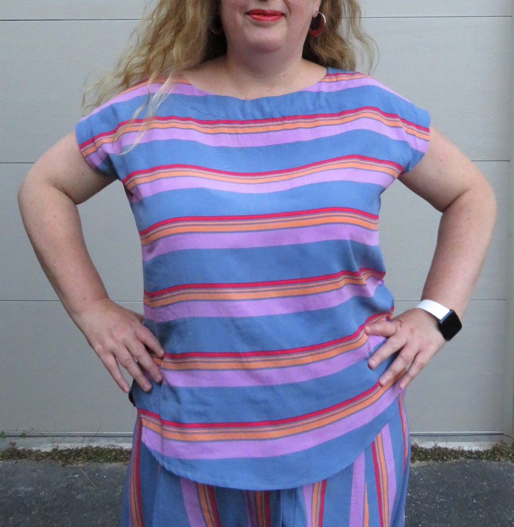 This is my second Marilla Walker Maya top and I have waited overly-long to repeat this pattern. The first time I used the “Tessuti hack” that a lot of people go for and added on cuffs and lengthened sleeves, but this time I wanted to try the pattern as intended, which is with short grown-on sleeves. I retraced it and made a couple of other small adjustments from the first time: