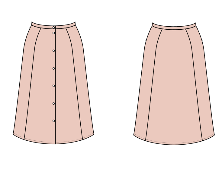 As I mentioned, the Sawyer is one of two new patterns this month for Seamwork, the other being the Milo cardigan. It’s a midi-length skirt with shaped panels and button plackets. The bonus version omits the front button closure and adds a side zipper. I made the size 16 without any adjustments, although I probably took about an inch off the length.