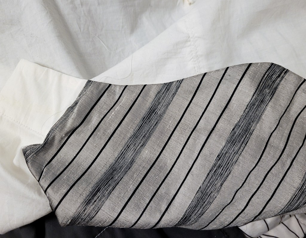 I’ve seen a lot of nice versions, but I somehow managed to screw up the fabric cutting. I’m also not sure about the shape – it looks fine from the front, but from the side is not too flattering. And finally, this double gauze was not a great choice for a collared top. It crinkles right up in the wash and it’s a bugger to iron and I HATE ironing. So it’s probably not going to get worn much. C’est la vie.