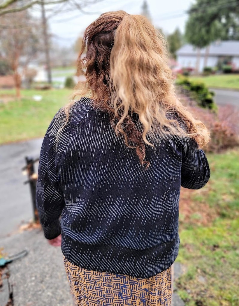 The main differences with this version, aside from the size, are that I left out the snaps altogether for that boxy jacket look and that there are bust darts, which definitely add a little to the shaping. The darts were perfect and I didn’t have to adjust them at all. I think I mentioned it when I tested the Highlands Wrap Dress, but Allie really nailed the D cup bust as far as I’m concerned.