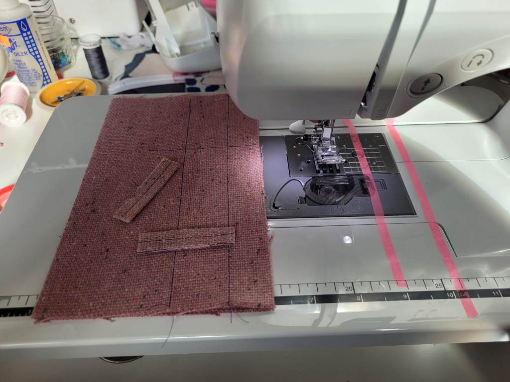 All measurements were checked and sewing lines were marked. Needles were dropped in exactly the right spot and it was interesting to me that we shortened the stitch length to make sure we hit EXACTLY the right spot when sewing.