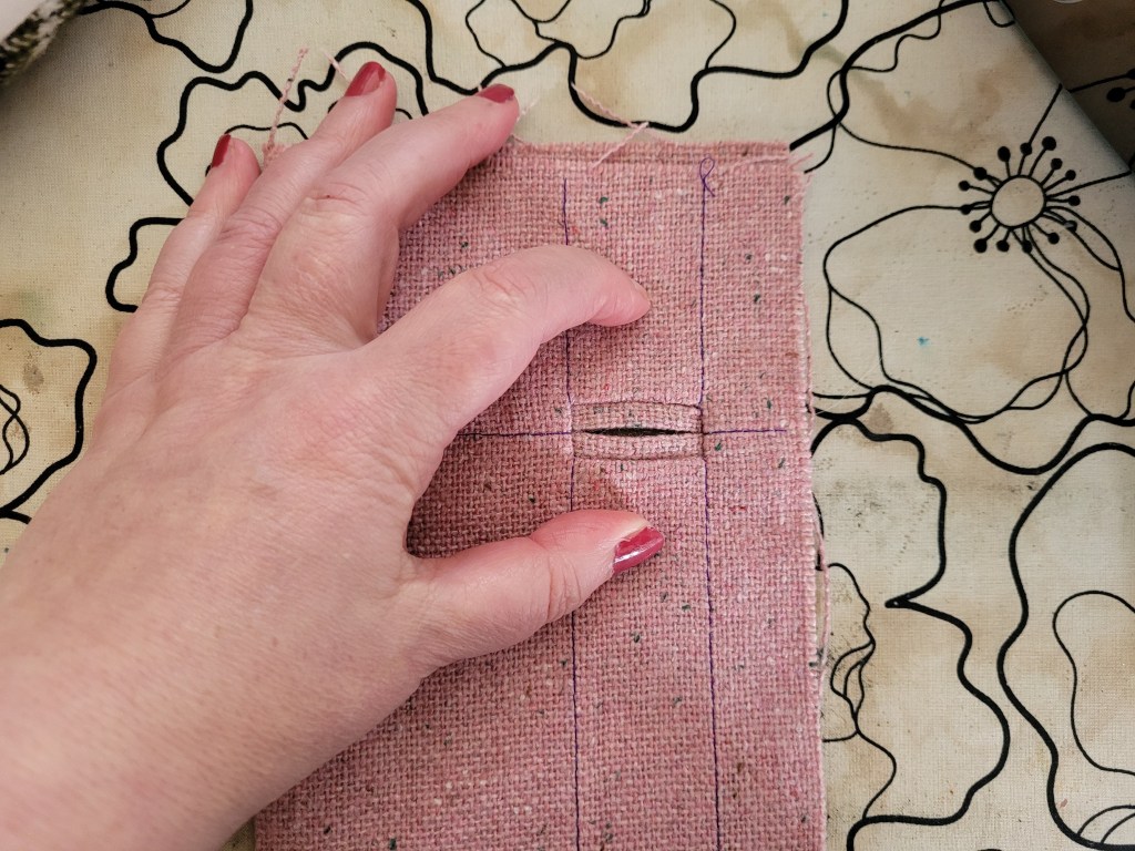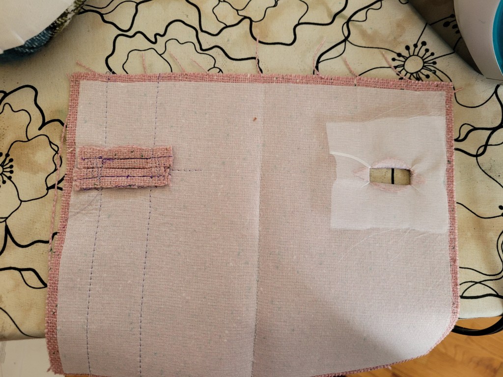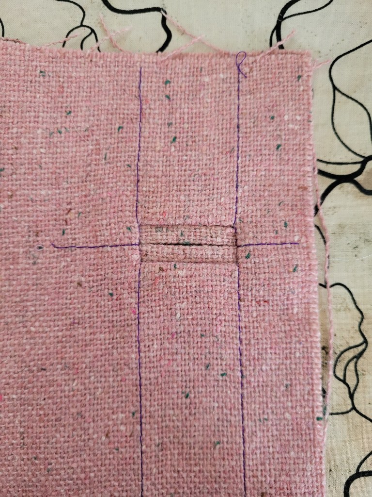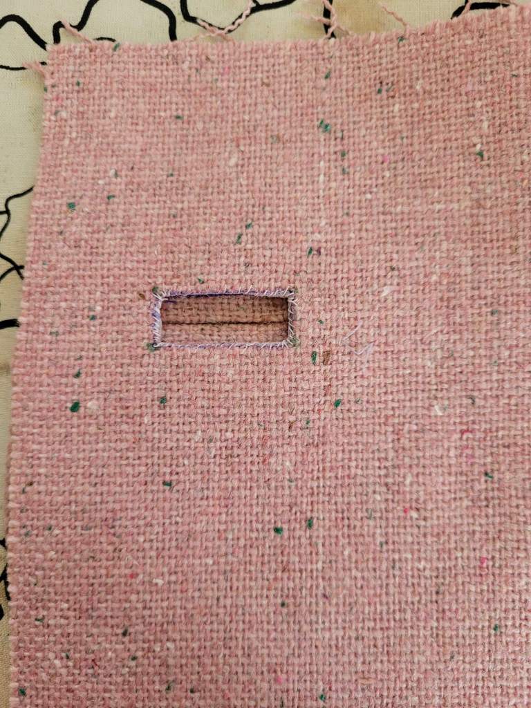 If you’ve sewn a welt pocket, it’s rather similar, but in a much smaller version of course. My favourite tip that I shall try to commit to memory was that when you snip out your rectangle for turning the welts through, you should have a very short straight snip in the middle and longer diagonal snips to the corner. Usually you see it the other way round, with short diagonal snips to the corner, but I got a much better result this way.