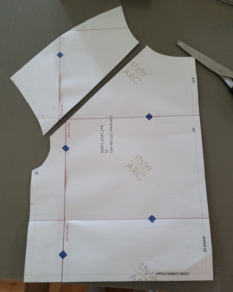 I had a good look through my pattern stash, but didn’t really have anything similar and the time factor meant that extensive hacking wasn’t an option. After a bit of a search, I came up with a coat that had a similar shape and definite possibilities – and that was the Casey Coat by Style Arc.
