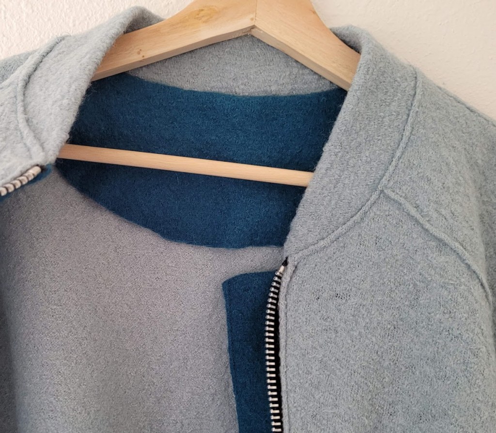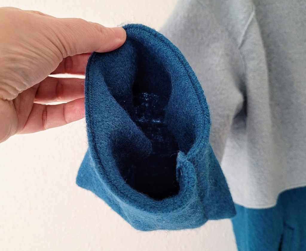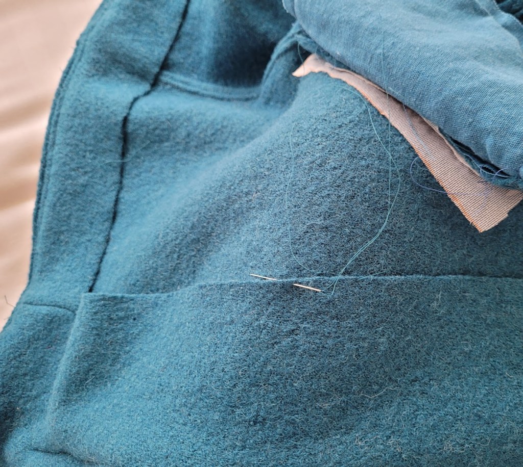 I then decided to handsew all the facings down with a blind hem stitch. This wasn’t detailed in the instructions, but the boiled wool was so bouncy that I felt it really needed it for a clean finish inside.