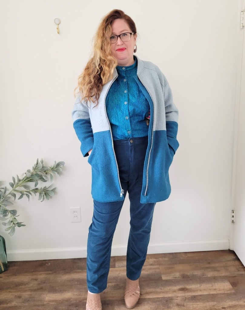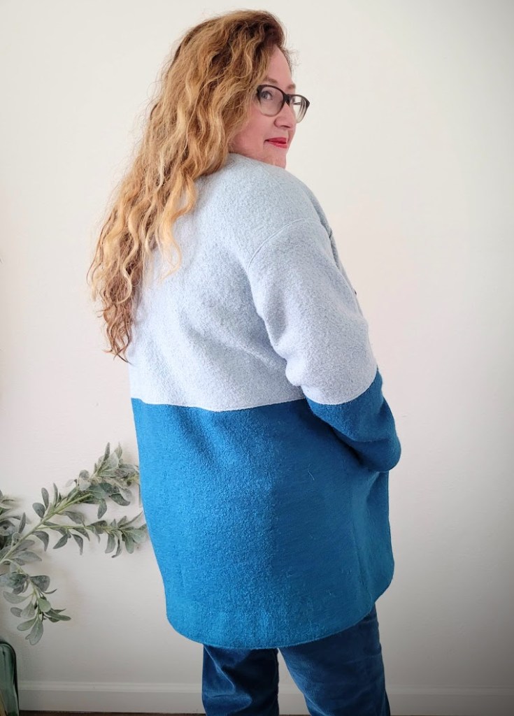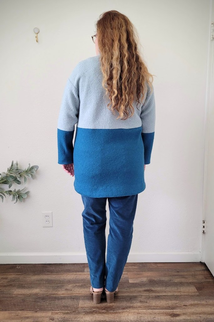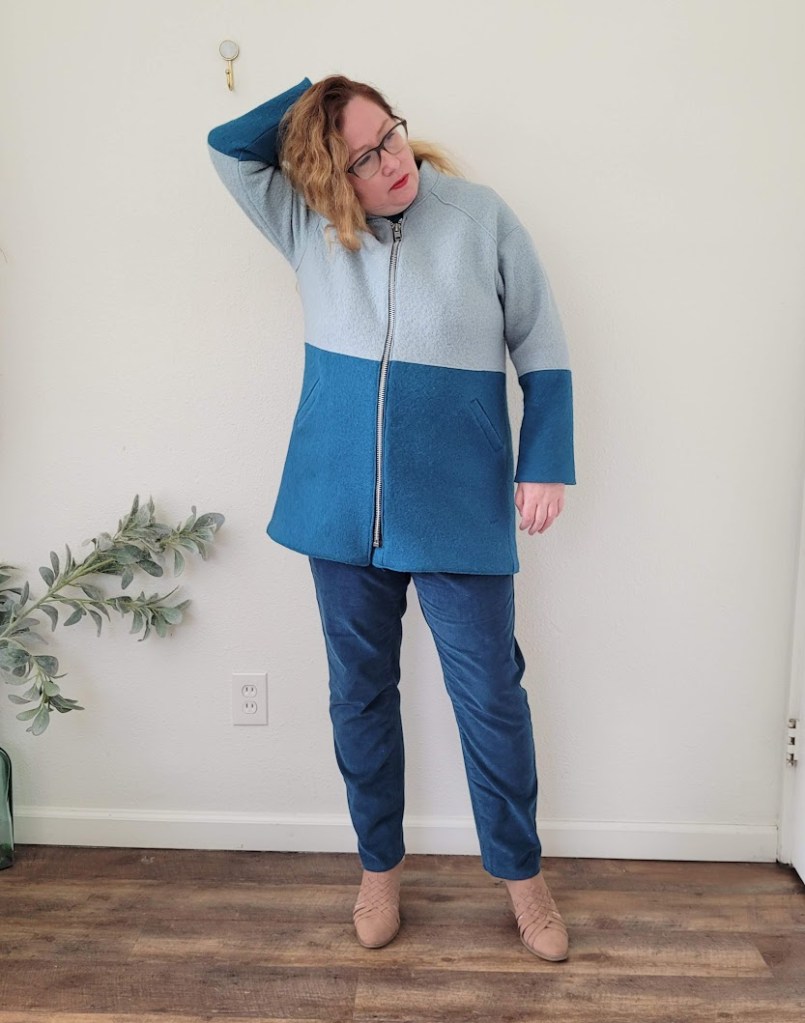 Now I’ll say at this point that the final coat is not too small and I really like the way it turned out, but it did NOT need to be sized down. I found a couple of reviews (after the event of course), which said that they had also gone down a size unnecessarily. It’s pretty much a true-to-size pattern and I had effectively gone down two sizes. Oh well.
