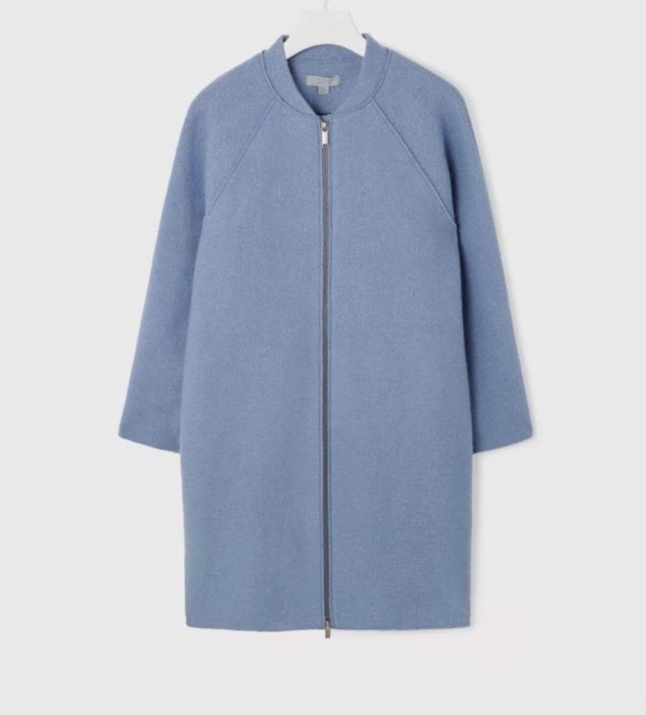 I knew from the beginning that I would make a piece of outerwear and I was partly inspired by a couple of ready-to-wear coats that I’d pinned a few months back. I had some boiled wool in my stash and had been looking for ideas on what I could sew with it. The principal coat that had caught my eye was very simple in shape, with a slight cocoon silhouette, raglan sleeves and a full zipper front. It looked streamlined and modern.