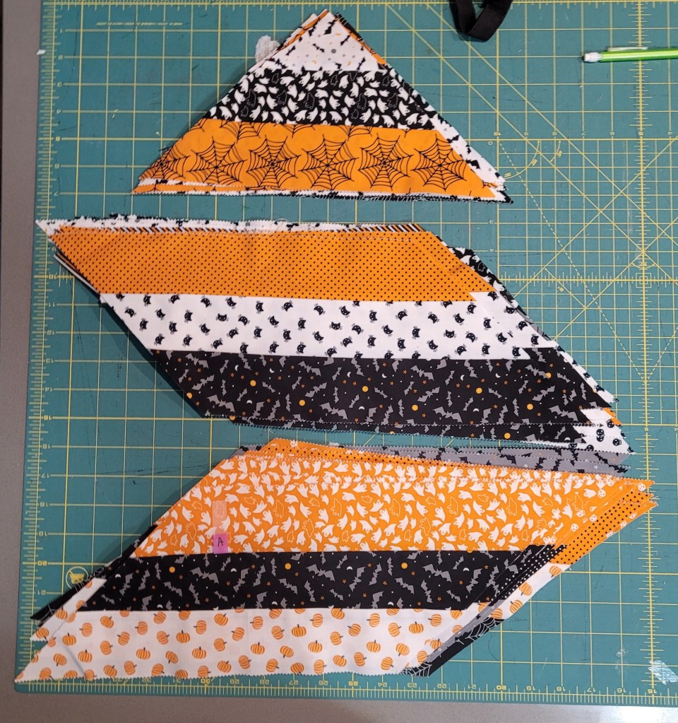 I don’t know if I’ve mentioned before that we are massive Halloween fans, but I’m sure I have. I was in the local quilting shop to pick up a small order and I saw some cute Moda jelly rolls on sale in this fabulous Halloween fabric, which I promptly snapped up. This whole quilt was made with one jelly roll and two little extra strips from another fabric (the same as the binding).