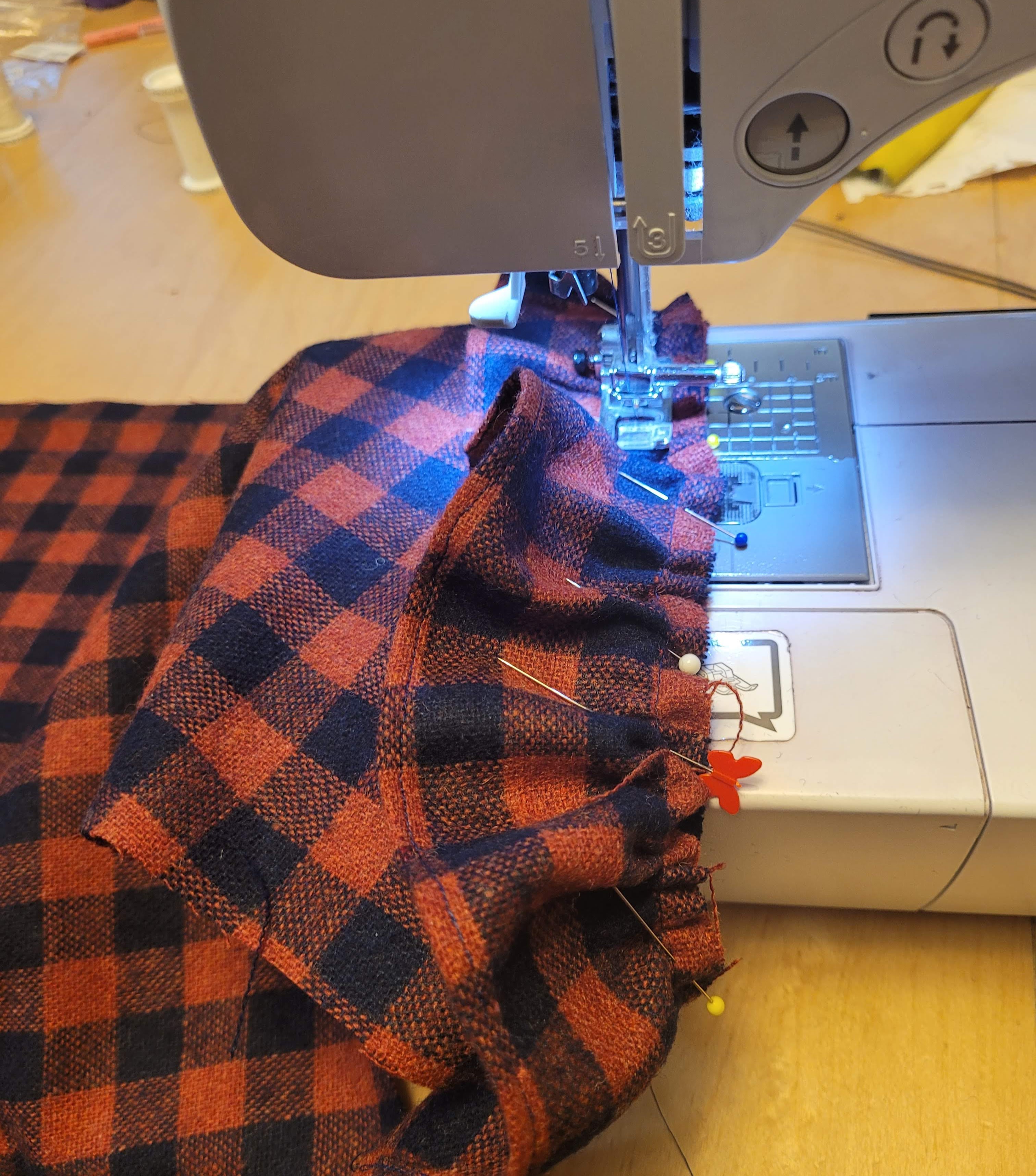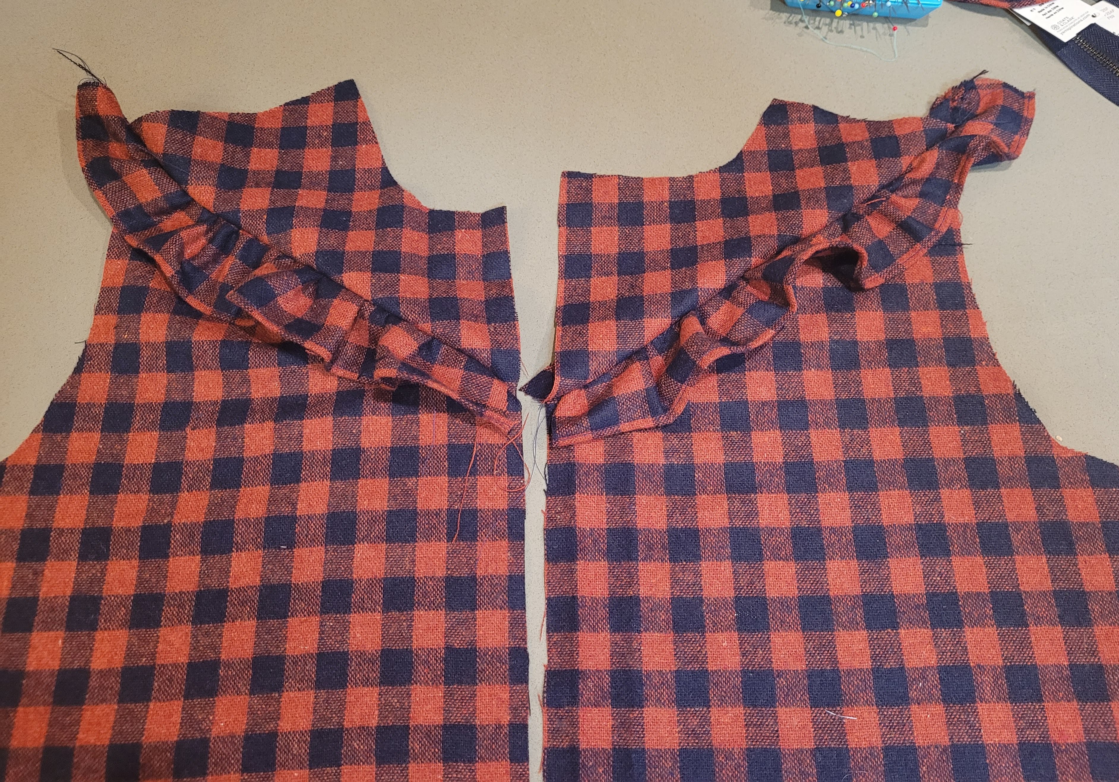 For mine, I decided to add a little ruffle at the shoulder and also to use exposed zipper pockets instead of the pattern’s regular welt pockets. I have absolutely nothing against a welt pocket, but I’ve made a few recently, so fancied a wee change. I also thought the exposed zip would look quite good against the plaid and break it up a little. I’ve included a short tutorial for both further down the page in case you wanted to try them and weren’t sure how to approach the process.