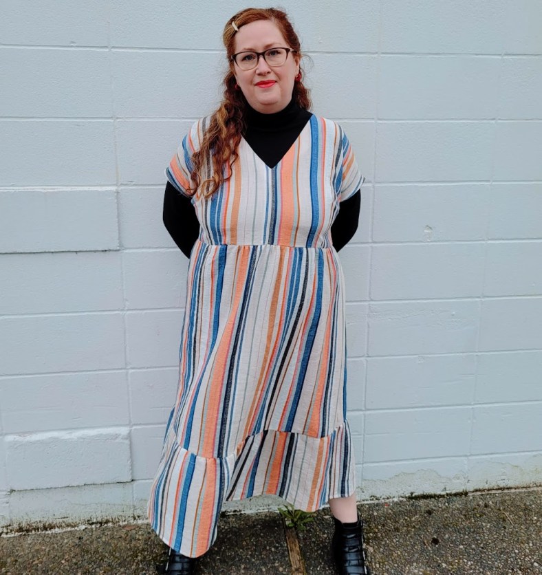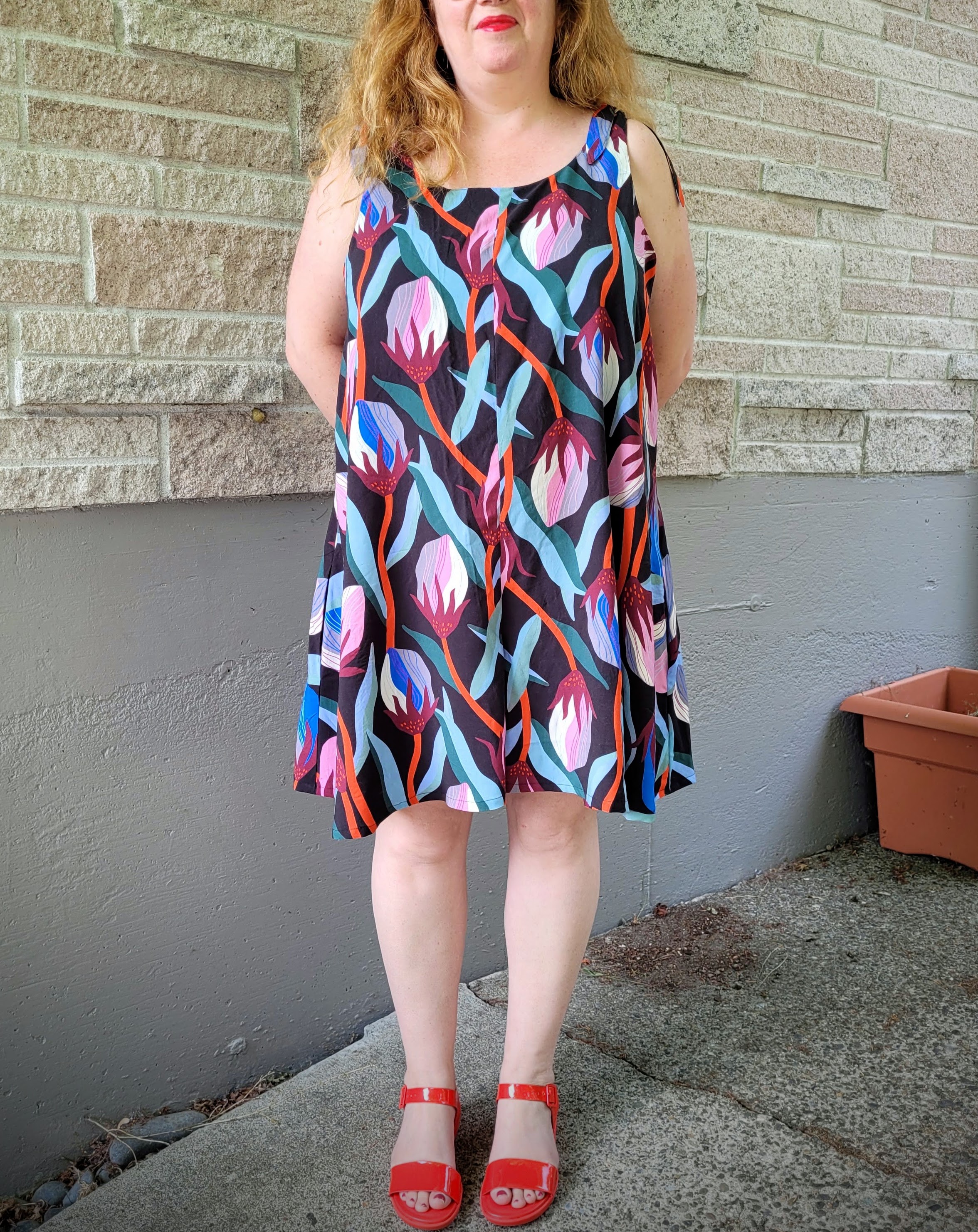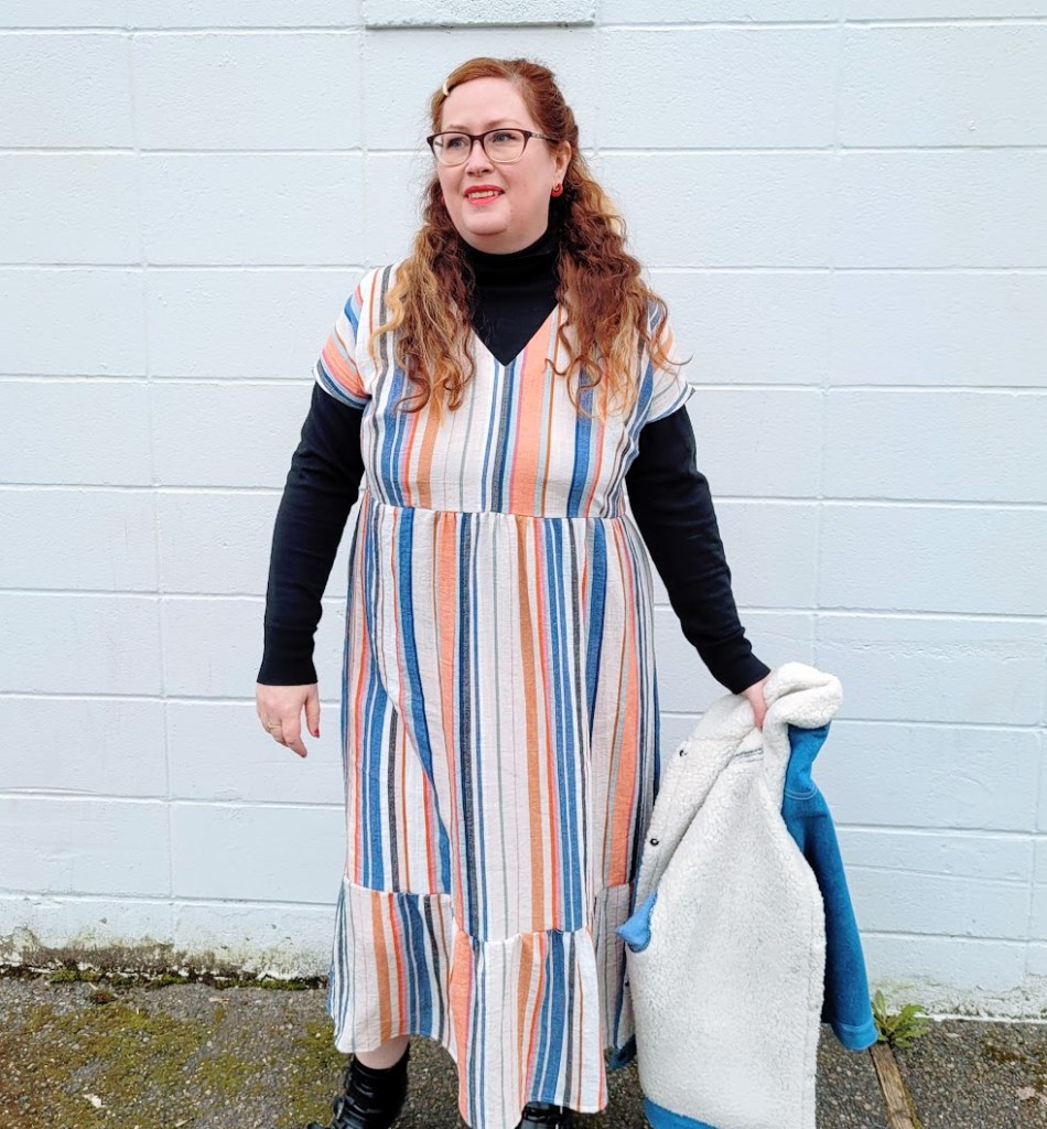 Happy New Year folks! Yes, it’s me! Well, that was an unintentional hiatus away from the blog and social media! I must say it was rather pleasant once I got used to it, but I’m definitely happy to be back with a new garment today. It turned out that, in the end, my ankle was significantly more damaged than we initially thought and so I had to sit out most of November and early December until it really started healing properly. Then we went away for Christmas to visit my mother-in-law, which was lovely, but craft-free. I also have some big old life news that has taken up most of my bandwidth the last two months, but I’ll write more on that in my next post. For now, here is a fab new dress from Seamwork!