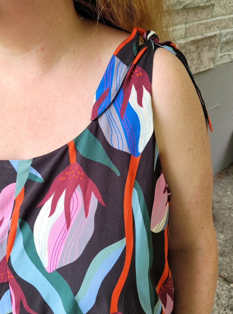 I wasn’t kidding when I said I was into dresses right now. I have this one, another two in progress and ANOTHER two prepped and just waiting to be cut out (which as you know, is my favourite thing to do (yes, I’m a weirdo, but I just adore the cutting part). This is the Seamwork Kimmy, which came out last year at some point. I really liked the version on the model and filed it under “potential future projects” in my brain, and then I saw some versions on Instagram that prompted me to order the copyshop version while I was getting some other stuff printed. It’s a fun little sundress , which is mostly a success, but I don’t think it will go down as a favourite of all time. Let me tell you why…