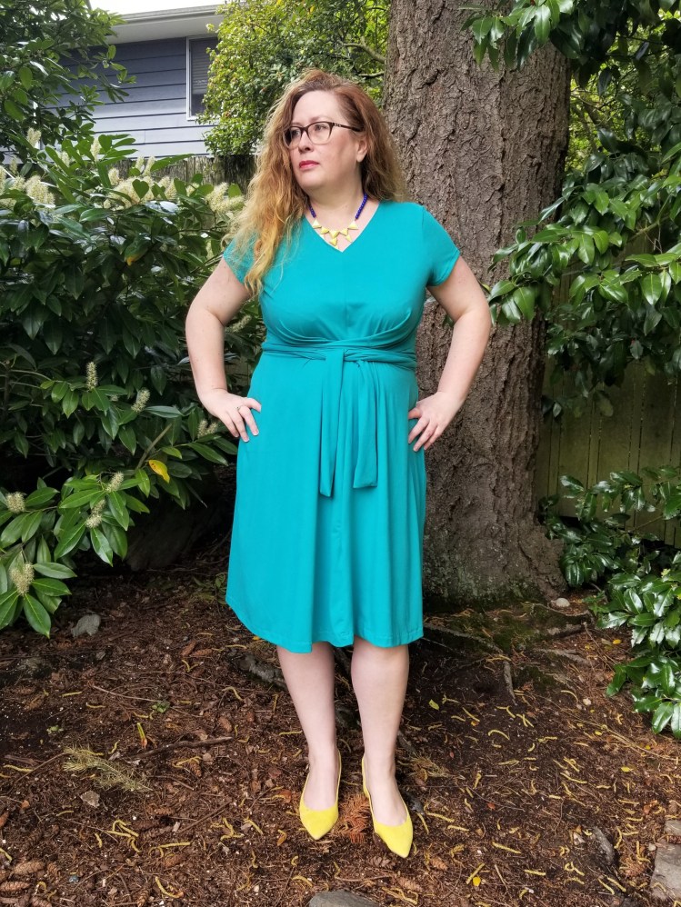 I cut the size 14 at the shoulders and graded out to 18 at the waist and hips, which works for me in the Liesl + Co. standard sizing. There is plenty of stretch in this fabric, so it fits over my bust comfortably. It’s worth noting though, that the Belgravia is also available in extended sizing 16-30 as well as regular, so it might be worth checking out the measurements on both ranges. I probably would have made the extended size 16, but only the regular sizing was available when Liesl sent the Advisor’s Circle copies of the patterns. Continue reading “New dress: Belgravia knit dress by Liesl + Co. with added flare”
