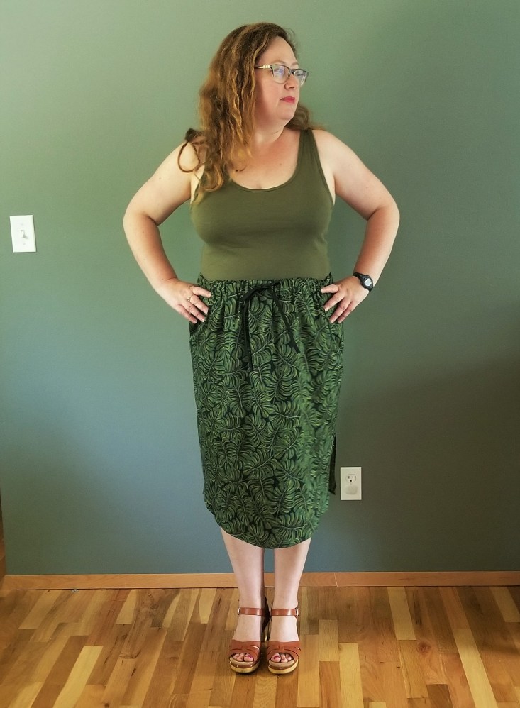 It was also the only garment that I didn’t have an exact pattern for. I knew I wanted a knit top with a funnel neck or some sort of longer neck detail, short sleeves and it to be slightly cropped. I had a few pattern ideas in mind – the Sew House Seven Toaster Sweater 1 and Seamwork Astoria among them. My friend Megan mentioned that an altered Sadie might do the trick – and I realised she was right. Even better, she already had the copyshop version printed, saving me a lot of cutting and sticking together, so I decided to go for that one. Continue reading “New top: Hacked Seamwork Sadie top”