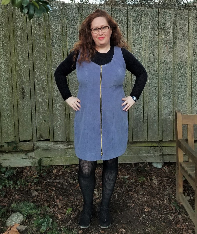 The Faron jumper is described by Fig and Needle as “a sleeveless overdress with a scooped front neckline and low back, front and back princess seams, an a-line skirt, and a separating zipper opening in the front.” Pretty accurate I’d say! The Faron is also designed to be worn over other garments, which definitely appealed to me and also comes in two size options: 0-12 (D cup) and 14-26 (DD cup), which was the clincher for me as I was really interested in trying out a larger cup dress. Continue reading “New dress: Fig and Needle Faron jumper – an exercise in fitting”